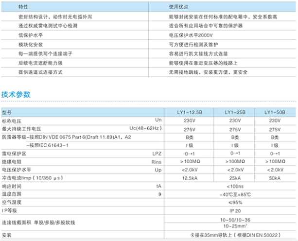 對于建筑物內(nèi)的雷電保護安裝工程,LY1-25B提供電源線上的雷電保護的等電位連接。該保護器已經(jīng)成功地通過了按照雷擊電流參數(shù)規(guī)定的測試,當雷電擊中蒙空線時,LY1-25B可以提供足夠多的保護,所以該保護器也能夠被使用在電源通過架空線引入建筑物的供電系統(tǒng)中。
