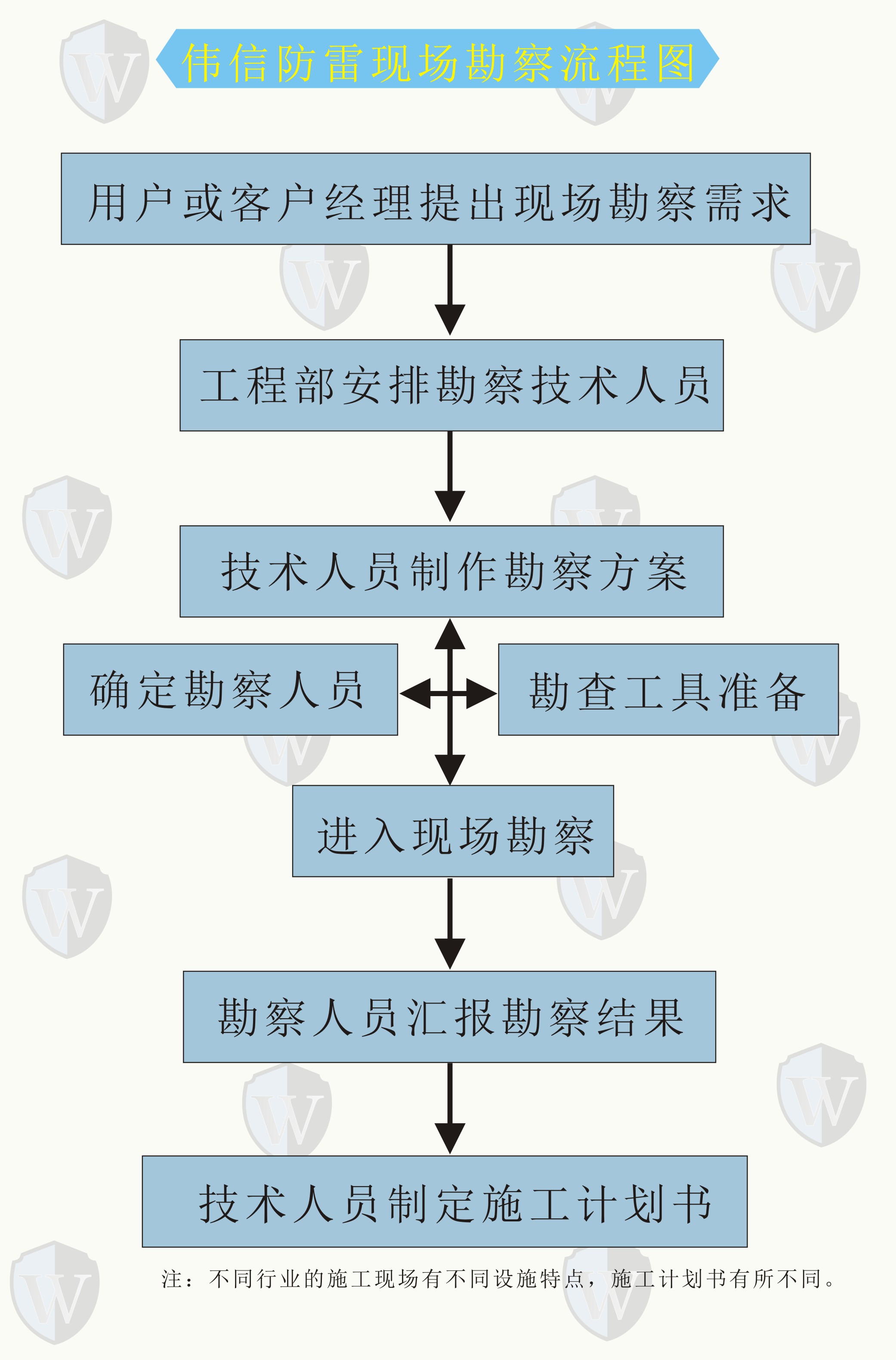 1、現(xiàn)場(chǎng)勘查:偉信防雷有專業(yè)的防雷工程技術(shù)人員,為有需要的客戶提供現(xiàn)場(chǎng)勘查服務(wù)。